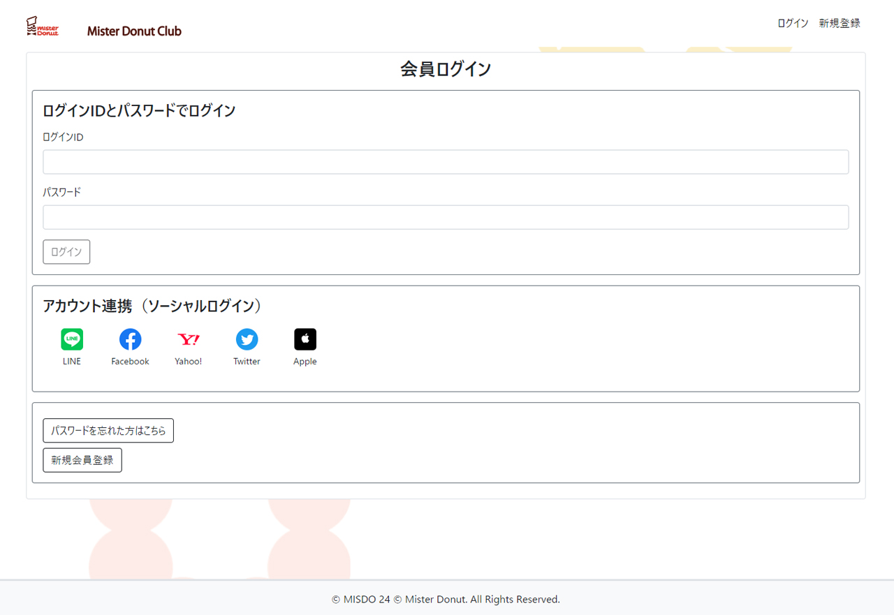 会員登録されていないお客様は「新規会員登録」をクリックして、会員登録をしてください。