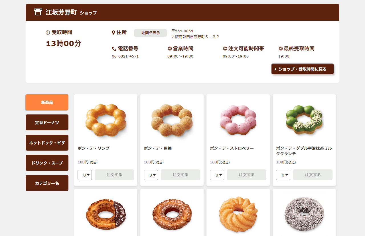 カテゴリをお選びいただくと、該当する商品の一覧が表示されます。