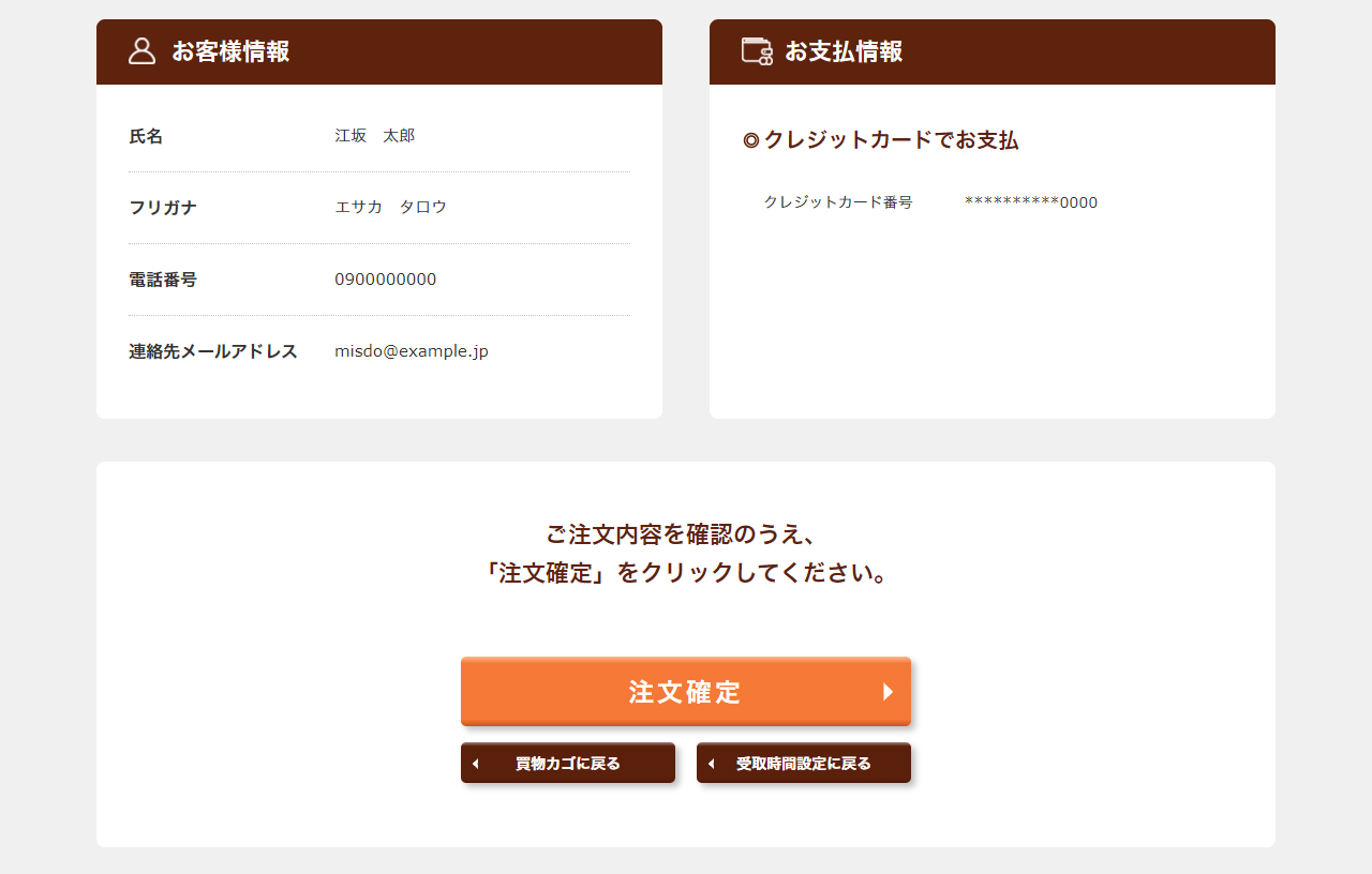 受取時間になったら直接「受け取りカウンター」にお越しいただき、スタッフに注文完了画面または確定お知らせメールに記載された「受取番号」をお伝えください。